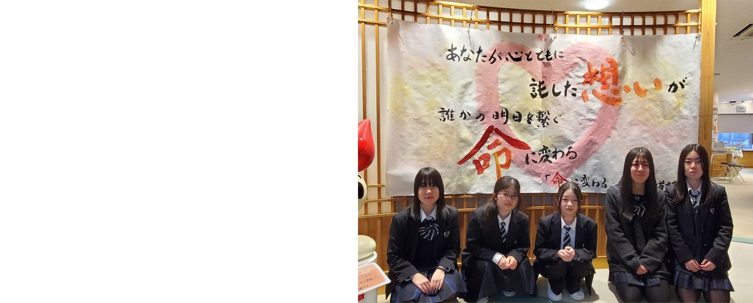 献血一つを呼びかけるために、生徒たちは「学び」「相談」「挑戦」し続けました。定例化した活動は次第に顧問の手を離れ、先輩から後輩へとその代ごとの特色を持った姿でバトンタッチされていくようようになりました。「継(つな)ぐ」ことが加わったのが2025年でした。